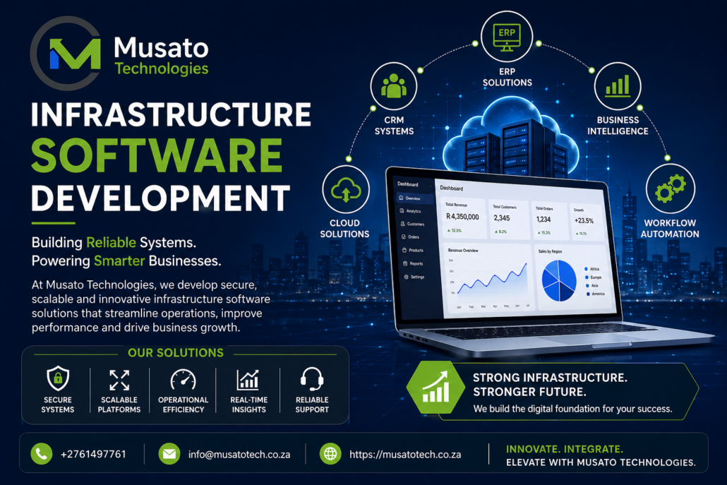 If your organization needs infrastructure software development, we are ready to help you modernize operations and accelerate growth. Whether you need ERP software, CRM systems, cloud platforms, analytics dashboards, or custom enterprise tools, Musato Technologies delivers solutions that create measurable results.