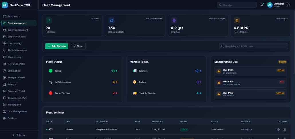 The Fleet Management System offers end-to-end control over vehicle operations, costs, and compliance.